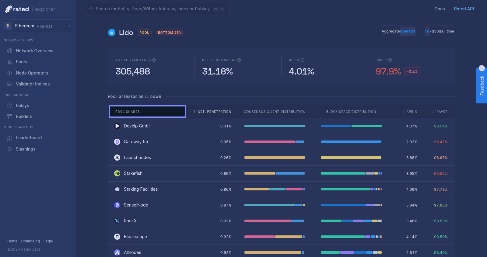 Operator overview (in Pools for example) allows sorting on apr, performance, penetration, but not by name. Would love that feature.